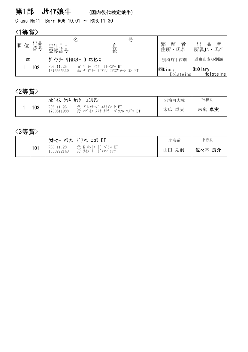 第1部 Jサイアカーフクラス(10ヶ月以上、12ヶ月未満)