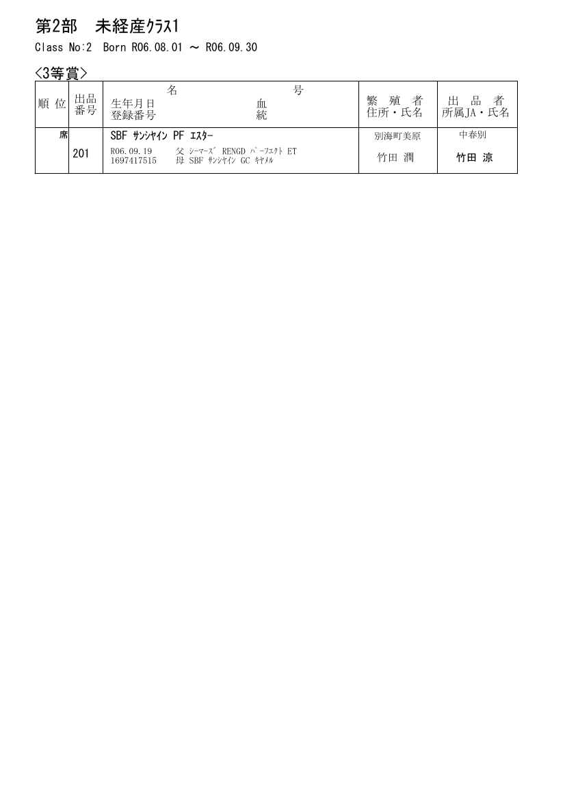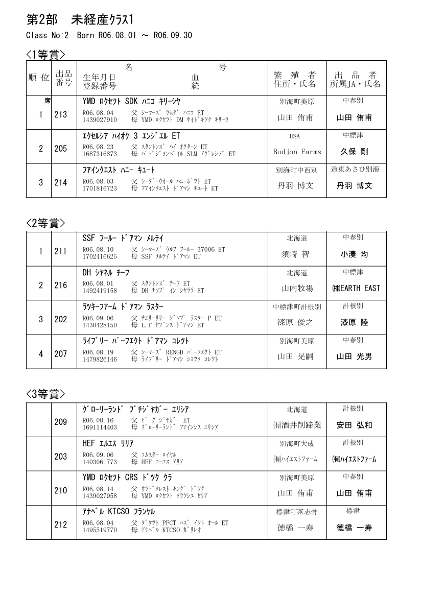 第2部 未経産カーフクラス(10ヶ月以上、12ヶ月未満)