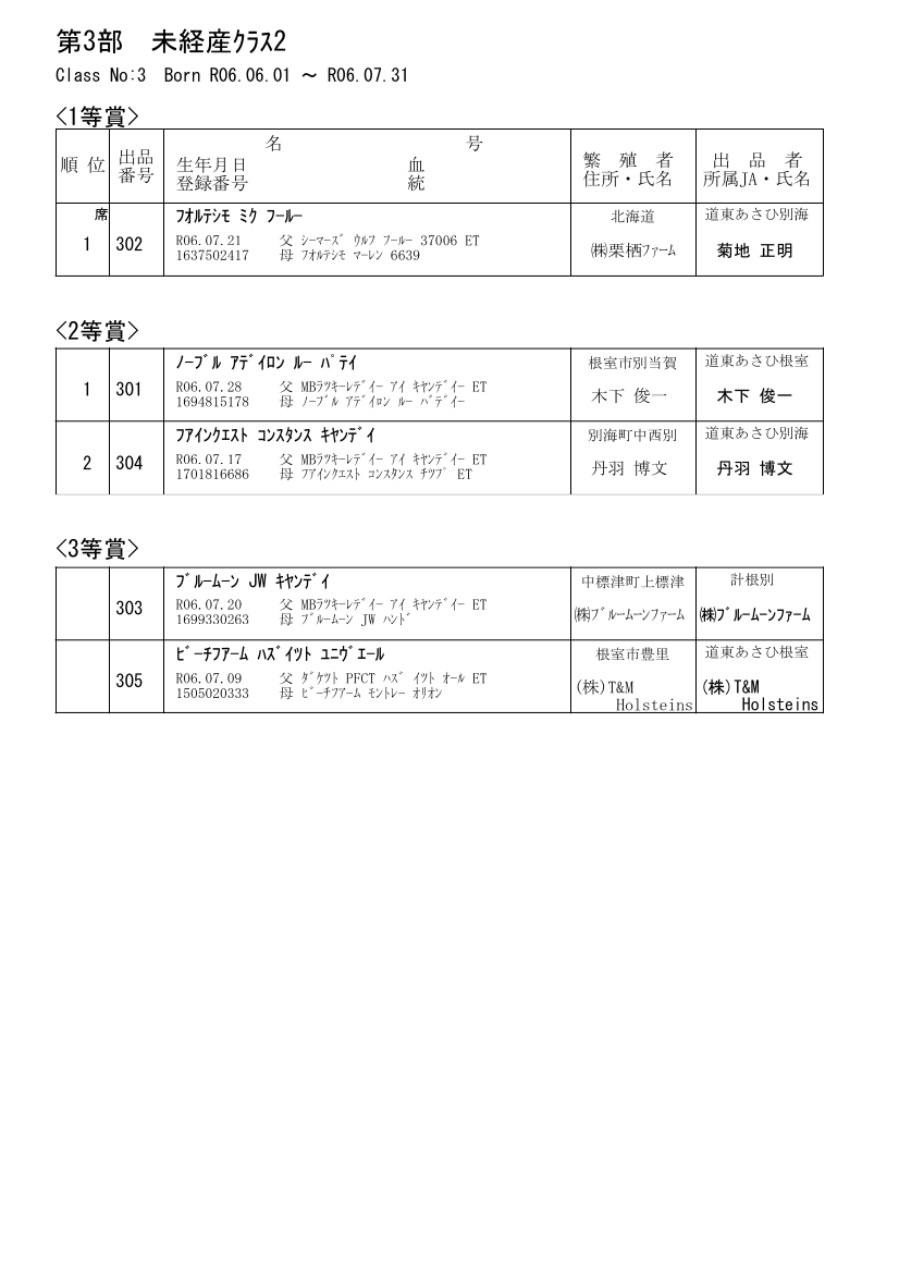 第3部 未経産ジュニアクラス(12ヶ月以上、14ヶ月未満)