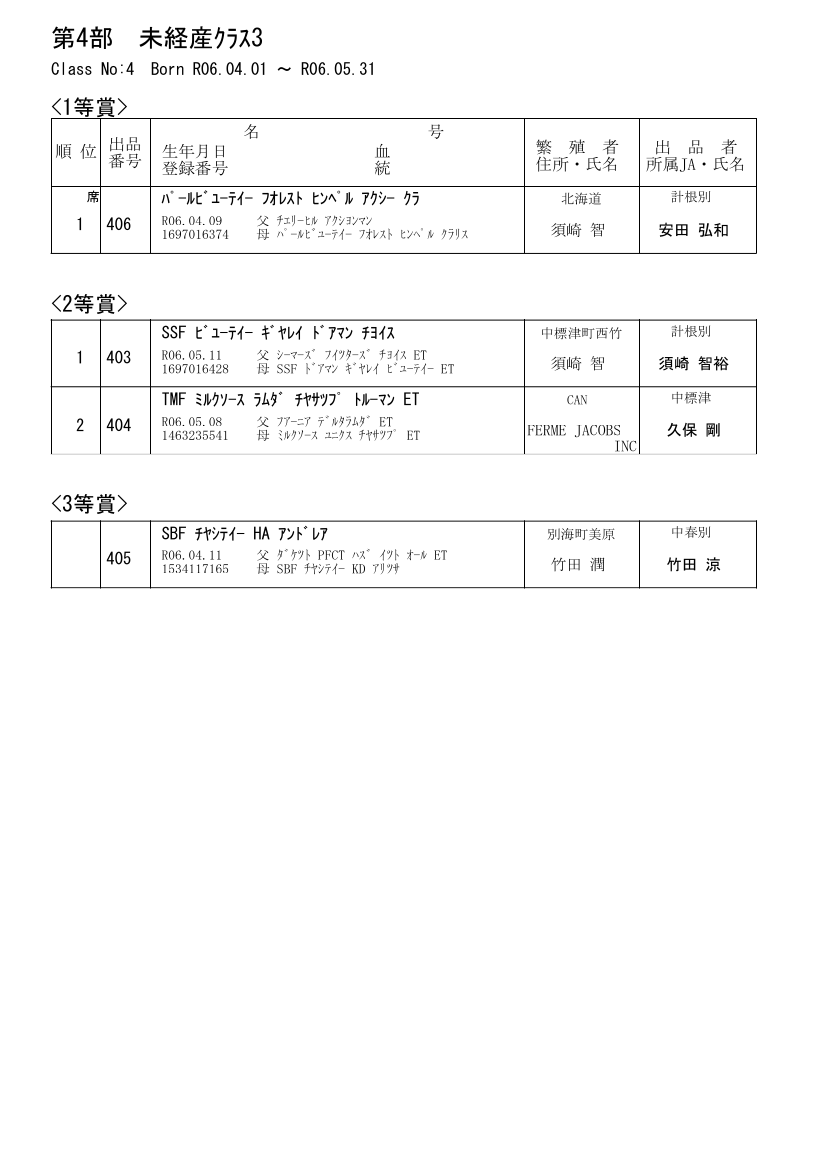 第4部 未経産ジュニアミドルクラス(14ヶ月以上、16ヶ月未満)