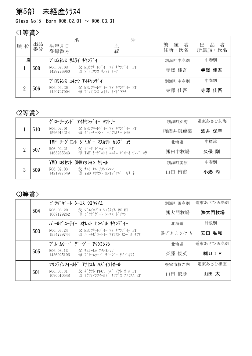 第5部 未経産ミドルクラス(16ヶ月以上、18ヶ月未満)