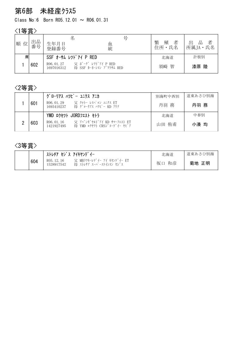 第6部 未経産シニアミドルクラス(18ヶ月以上、20ヶ月未満)