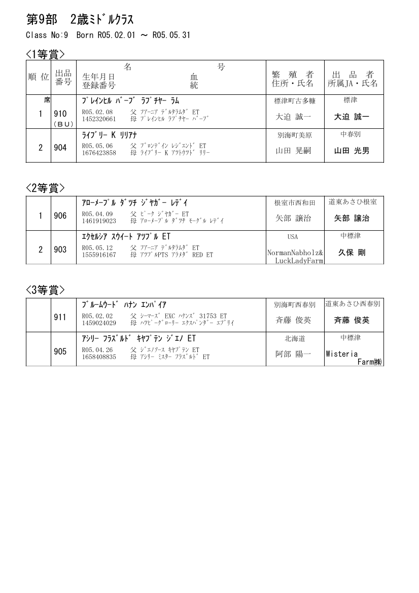 第9部 ジュニア2歳クラス(30ヶ月未満)