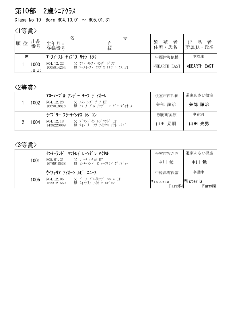 第10部 シニア2歳クラス(30ヶ月以上、36ヶ月未満)