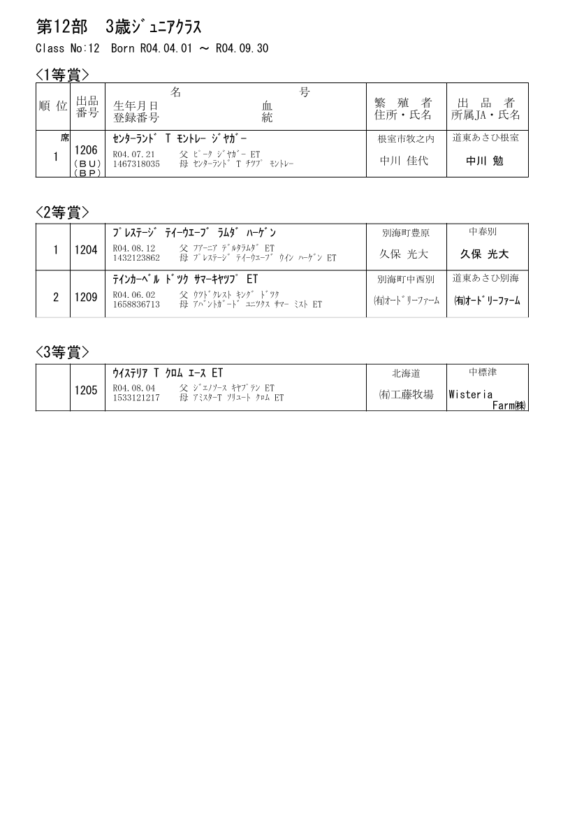 第12部 ジュニア3歳クラス(36ヶ月以上、42ヶ月未満)