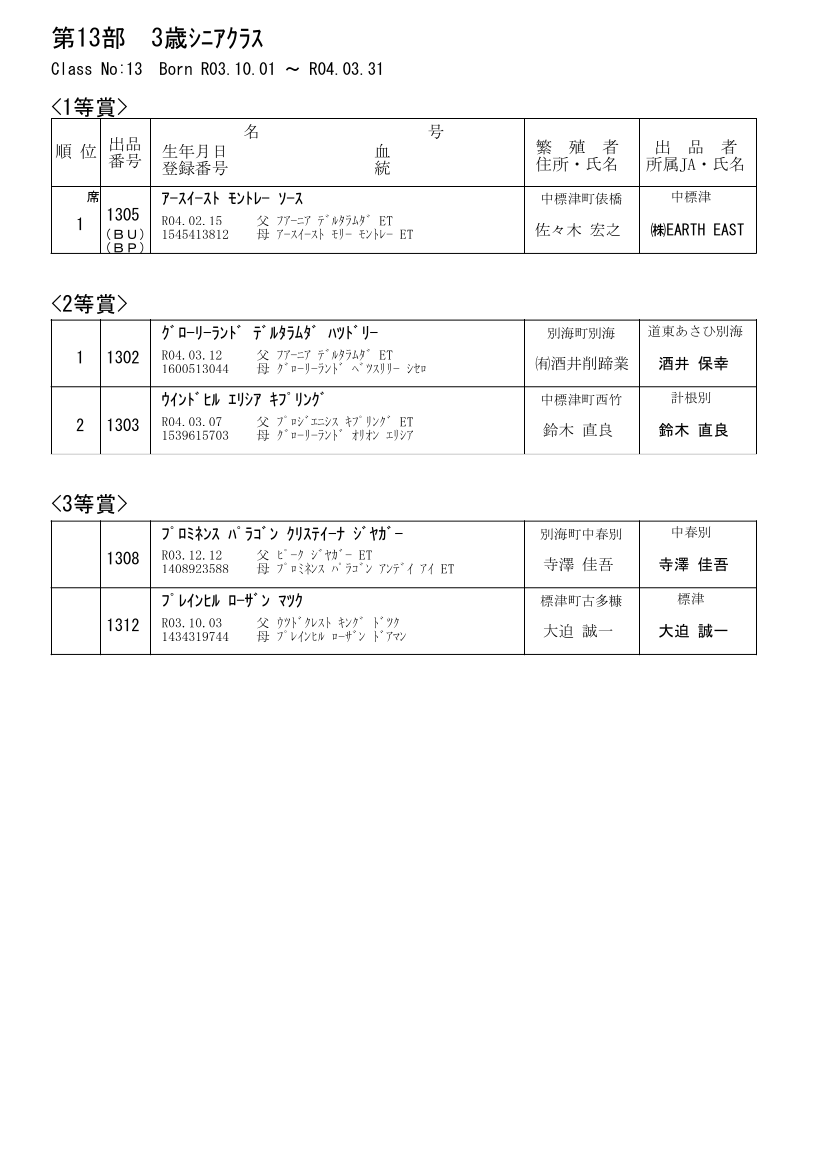 第13部 シニア3歳クラス(42ヶ月以上、48ヶ月未満)